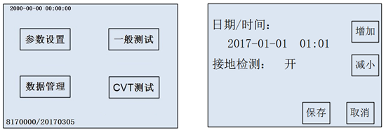 時間設(shè)置:打開儀器后直接點擊“參數(shù)設(shè)置”(如圖5-11)進入時間設(shè)置界面。進入時間菜單(如圖5-11)后,點擊想要修改的時間數(shù)據(jù)項目上,然后再按增加、減小鍵調(diào)整相應的“時” 、“分” 、“秒” ,最后點擊保存修改時間設(shè)置,點擊取消退出設(shè)置并返回主界面。