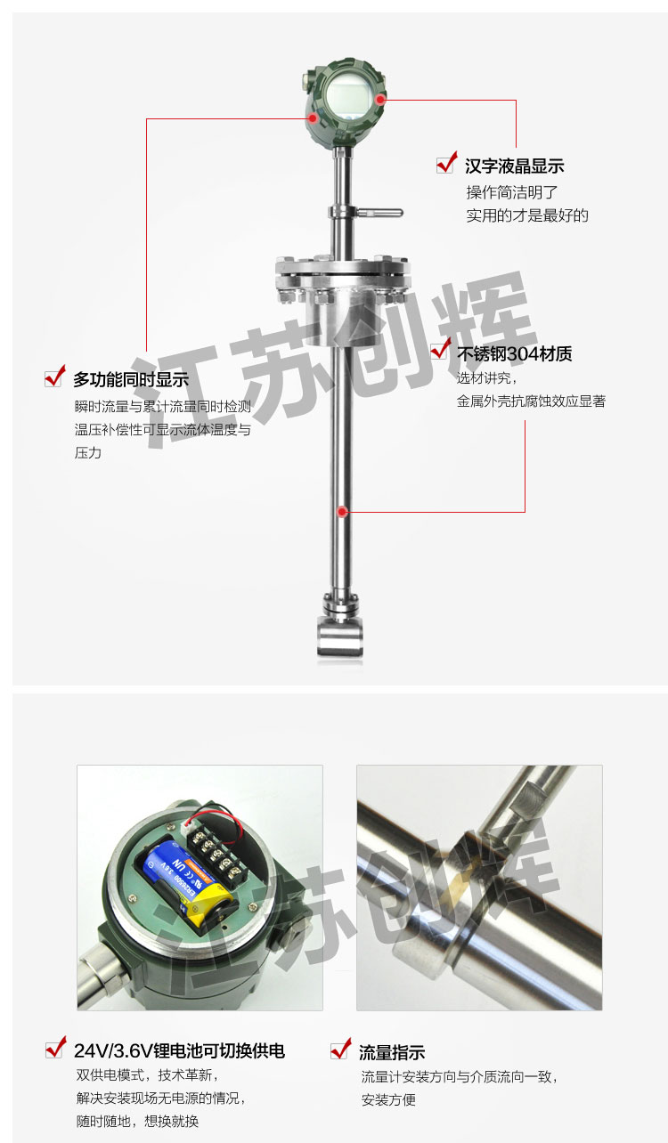 CH-LU插入式渦街流量計主要用于工業管道介質流體的流量測量,如氣體、液體、蒸氣等多種介質。