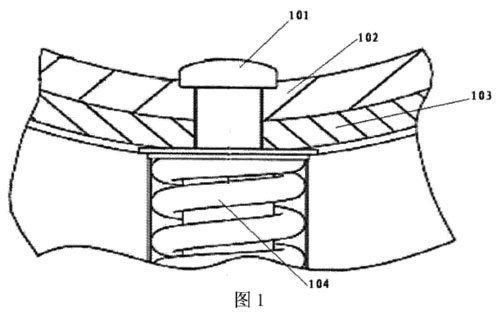 電磁流量計是一種根據法拉第電磁感應定律來測量測量管內導電介質體積流量的感應式儀表。電磁流量計中設置有電極,電極具有電極頭。圖1為現有的電磁流量計的部分結構的截面圖。如圖1所示,電磁流量計中布置有內襯102、測量管的管壁103、用于支撐電極的支撐彈簧104以及電極的電極頭101,等等。在圖1中,電極的電極頭101以裸露的方式布置。