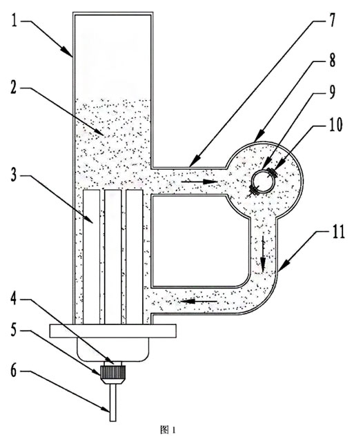電磁流量計的脫蠟裝置通過法蘭固定在管道內(nèi)。含蠟石油與水的混合物流過上述管道,PTC陶瓷加熱器3通電后釋放熱能,使位于PTC陶瓷加熱器3附近的導熱介質(zhì)2溫度升高,這部分溫度升高的導熱介質(zhì)2與位于箱體1上部的未被加熱的導熱介質(zhì)2發(fā)生熱交換,位于箱體1出口的導熱介質(zhì)2向上流動,經(jīng)**介質(zhì)通道7進入吸熱器8,使吸熱器8的外壁溫度升高在45℃左右,使粘附在吸熱器8外壁的石蠟涂覆層脫離。同時設(shè)置在吸熱器8內(nèi)的測量導管9外壁和電極10的溫度也隨之升高,使得位于導管9內(nèi)壁及電極10極掌面的溫度也被加熱到45℃左右,使粘附在導管9內(nèi)壁及電極10的石蠟涂覆層脫離。經(jīng)過熱傳遞后,吸熱器8內(nèi)的導熱介質(zhì)溫度降低。而位于第二介質(zhì)通道11內(nèi)的導熱介質(zhì)被PTC陶瓷加熱器3加熱后,溫度升高,與吸熱器8內(nèi)的導熱介質(zhì)形成溫差,使得位于吸熱器8內(nèi)的導熱介質(zhì)向第二介質(zhì)通道11流動。如此反復(fù)。這種導熱介質(zhì)的“微循環(huán)流動”采用了流體動力學的原理,替代了利用導熱循環(huán)泵使導熱介質(zhì)循環(huán)運動的現(xiàn)有技術(shù)。由于整個系統(tǒng)不必通過導熱循環(huán)泵來進行,節(jié)約了成本,同時還使得結(jié)構(gòu)更為簡單、保證了整個裝置的安全性和穩(wěn)定性。