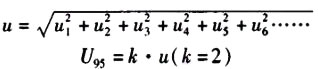 除了前文提到的測量結果的重復性、標準器示值誤差引起的不確定度u1、u2,引人各種干抗因子的不確定度分量應附加到校準結果中,根據需要附加進行評定的因素,有u3、u4、u5、u6等。得到: